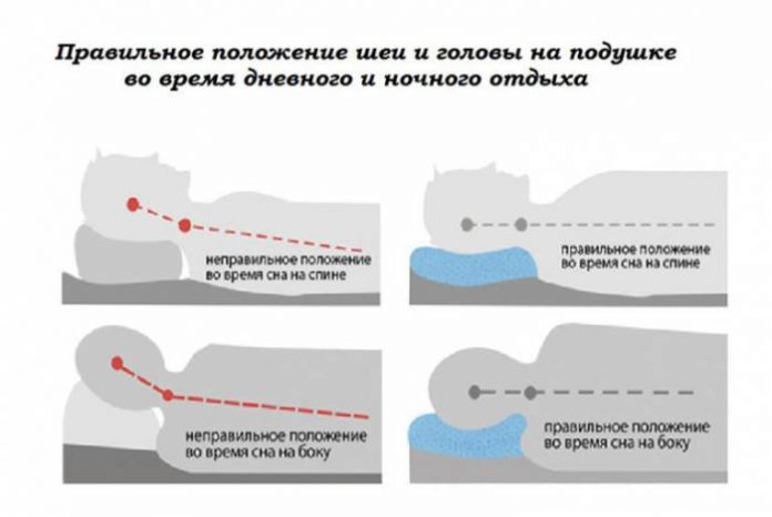 Ця річ призначена для того, щоб утримувати голову в правильному положенні. При сні на боці ніс повинен знаходитись на одному рівні з хребтом. Неправильно, коли подушка занадто велика, і голова лежить вище, ніж потрібно. Якщо ж вона занадто тонка, це теж призводить до болю. Вибирати подушку потрібно за формою вашої шиї.