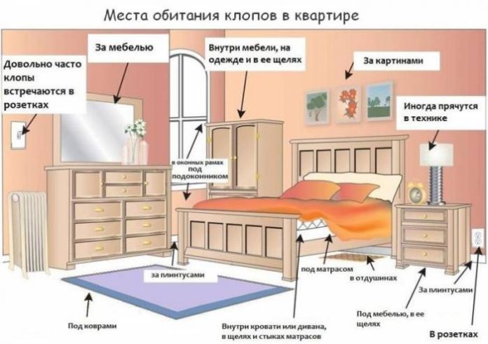 Місця їх проживання знаходяться в каркасах меблів, матрацах, в спинках ліжок. Саме там вони мають легкий доступ до людини, щоб вночі живитися кров’ю. Клопи не літають, але вони вміють швидко пересуватися по стінах, стелях, підлозі або меблів. З часом клопи можуть переміститися в інше затишне місце.