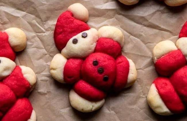 Ідея полягає в тому, щоб взяти просте тісто для цукрового печива, скачати його в крихітні кульки, з’єднати їх разом у тіло “Санти” та спекти.Якщо ви використовуєте фотографії як керівництво, це найпростіше цукрове печиво, яке ви приготуєте: