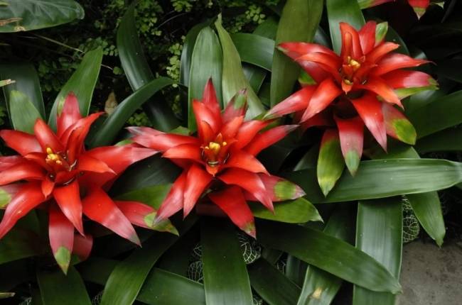 Це тропічні рослини, які воліють яскраве непряме світло або флуоресцентне світло, тому що прямі сонячні промені можуть пошкодити їх різнокольорове листя. Бромелії прикрашають ванні кімнати, кухні та вітальні, включаючи полиці і стільниці.