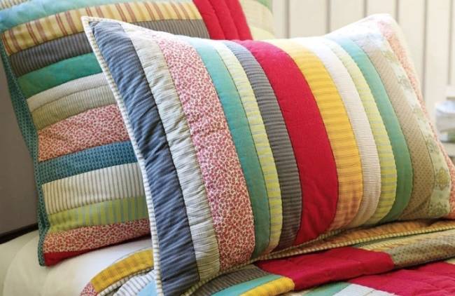 Коли у вас вийде сподобалася композиція, зшийте всі обрізки разом. Це передня панель подушки. Повторіть цей процес для задньої панелі, якщо тільки для цієї сторони не використовується один шматок тканини.