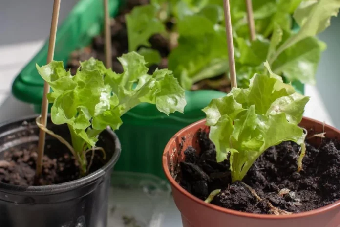 Листовий салат потребує трохи більше уваги. Він любить тривалий світловий день — 12–14 годин. Якщо природного світла недостатньо, використовуйте фітолампи. Для посадки обирайте скоростиглі сорти, сійте їх на відстані 6–10 см один від одного або в окремі контейнери. Температура проростання — 18–20°C. Не забувайте зволожувати ґрунт.
