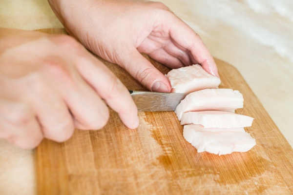 - Наріжте сало на рівні шматочки.
