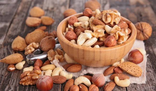 Це універсальне джерело білка, клітковини, вітамінів В6 і Е. У їхньому складі присутні мінерали – мідь, магній, селен, цинк. Незважаючи на високу калорійність (160-200 ккал на жменю або 0,5 склянки), горіхи містять в основному ненасичені жири, які зміцнюють серце. Ключ до успіху – різноманітність, відсутність солі. Мигдаль, волоські горіхи, кеш’ю, фундук – кожен вид по-своєму цінний. Максимальну користь забезпечує їх чергування в раціоні.