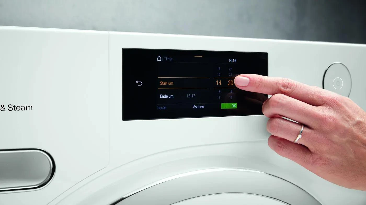 Принцип роботи електронної панелі ґрунтується на роботі мікропроцесорів, а керування роботою пральної машини відбувається через електронні сигнали. Багато сучасних моделей пральних машин мають можливість синхронізації зі смартфоном, що дозволяє керувати пральною машиною віддалено, розширює їхній основний функціонал, що неможливо реалізувати в механічних аналогах.