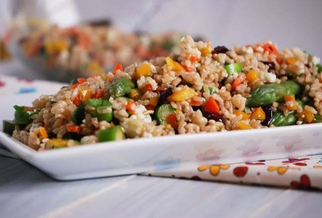 Смачна та поживна страва прикрасить стіл під час сімейної вечері та зустрічі з друзями. Листова зелень, гриби, перець, кабачок і коричневий рис наповнюють її клітковиною та корисними для здоров’я поживними речовинами.