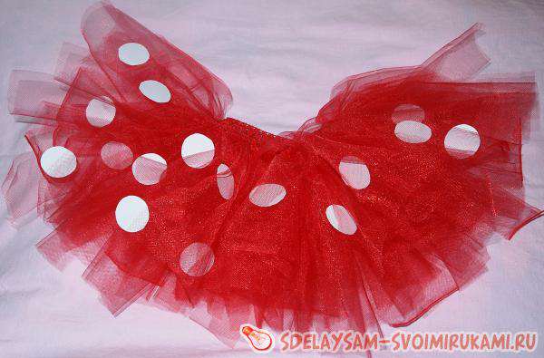 У другому випадку спідниця вийде багатоярусна, що зробить її красивіше і пишніше. Для завершення образу Міккі мауса на спідницю необхідно наклеїти або пришити кружечки паперу або тканини.