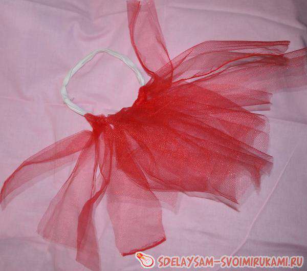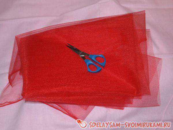 – фатин стрічковий або метровий. Я використовую 2 метри червоного фатину середньої жорсткості при ширині відрізу 150 см;