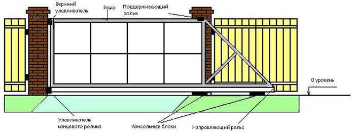 Щоб встановити ворота відкатні ворота своїми руками, необхідно пам ” ятати, що сама конструкція складається з наступних елементів:
