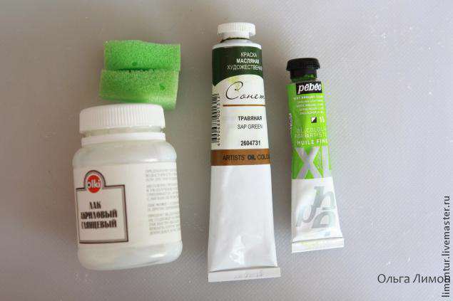 Візьмемо шматочок поролонової губки, наносимо на нього зовсім трохи зеленої фарби більш світлого відтінку.