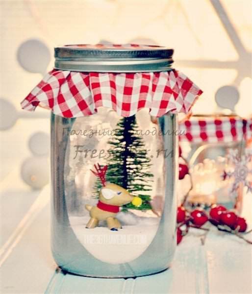 5.Тепер вам залишиться покласти всередину сіль і іграшки та сувеніри, що нагадують про Різдво і Новий Рік. Також накрийте банку відповідною тканиною і надягніть кришку або резиночку.