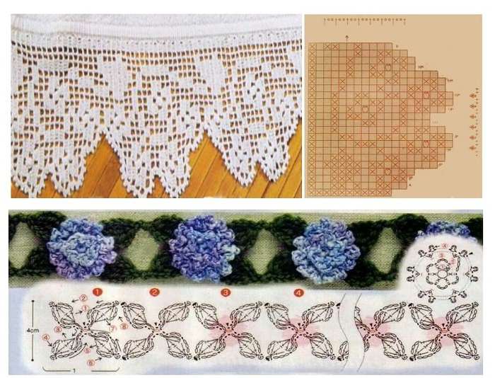 Вищенаведені схеми – це основні елементарні ази в’язання гачком. Є ажурні обв’язки і складніше. Звичайно, виглядають вони багатшими і оригінальніше, і для свого виконання вимагають набагато більше часу і посидючості.