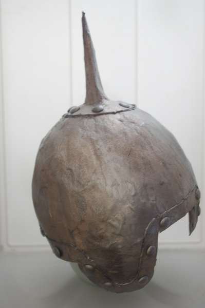 Для початку підшукайте підходящу основу для свого творіння. Вона повинна бути округлою і опуклою. Простежте за тим, щоб її діаметр збігався з розміром голови майбутнього богатиря. В якості основи можна використовувати глобус, м’яч або латексний повітряна куля. Окремо виготовте загострену верхівку у формі конуса. Зліпіть її з пластиліну і прикріпіть до сфері.