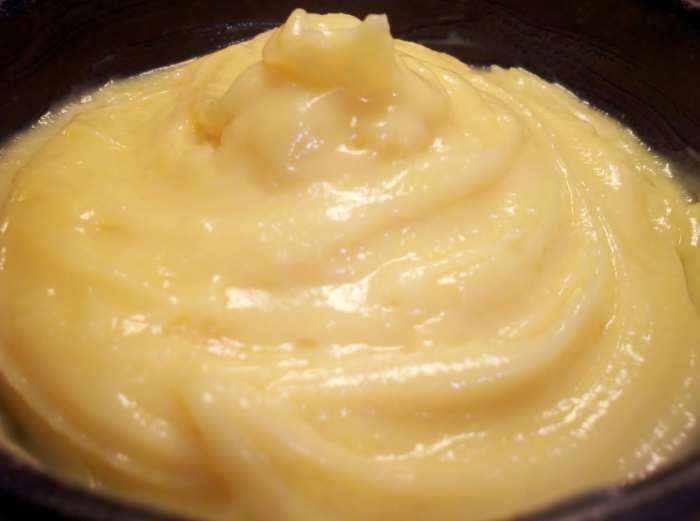 Щоб зробити такий десерт, кукурудзяний крохмаль розчиняють в молоці, а потім додають в нього цукор, ванілін, жовтки і лимонну цедру. Після цього всі компоненти сильно збивають і ставлять на середній вогонь.