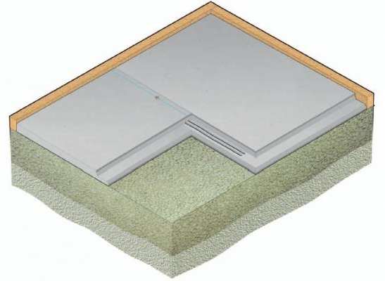 При рівній поверхні підстави замість засипки керамзиту застосовують листи екструдованого пінополістиролу або інші теплоізоляційні матеріали з прокладкою кромочной стрічки уздовж стін.