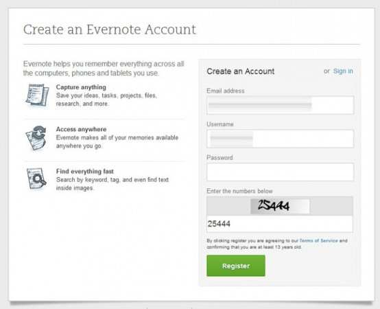Отже, ви вирішили скористатися можливостями Evernote. Це що за сервіс і для чого він призначений, ви вже знаєте, тому тепер необхідно пройти реєстрацію на ньому.