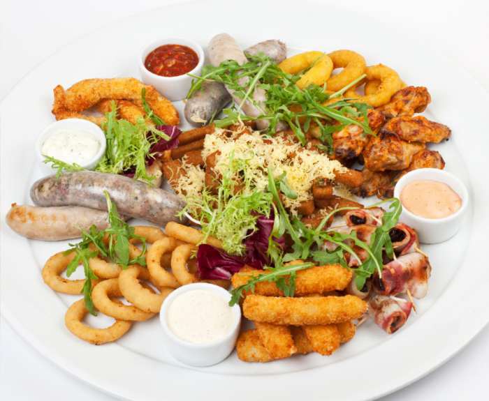 Якщо є час і бажання, можна приготувати більш складні страви. Наприклад, тарталетки або канапе з сиру або риби, м’ясні рулетики, креветки в беконі, піцу, печеня з баранини або свинини, салат. Головне – готувати страви з хорошим настроєм, з ним же їх подавати. Тоді веселощі вийде на славу, а значить, ви все зробили правильно. Приємного апетиту!