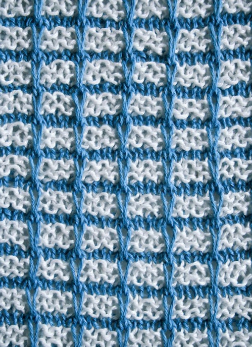 Розповімо докладніше про те, як зв’язати один з двоколірних візерунків, званих “ледачий жаккард”. Схеми з описом в’язання також наведемо нижче.
