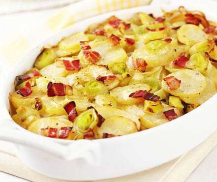Запечена картопля з грибами і беконом