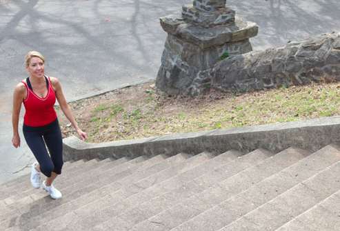 Якщо погода на вулиці не розташовує до ходьбі, можна замінити її ходьбою по сходових східців. Темп тут теж буде трохи відрізнятися від звичайних вправ.