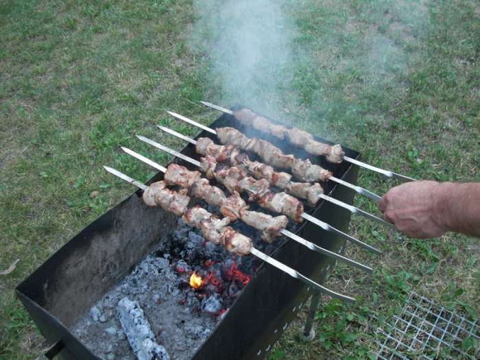 - Як мінімум, вам потрібно мангал. Дуже популярні сьогодні прості невеликі розкладні мангали, які легко встановлюються практично в будь-якому місці. Увага: при користуванні мангалом в лісі (та й не тільки) необхідно дотримуватися правил пожежної безпеки і не підпускати до палаючого вогню маленьких діток: це загрожує тим, що ваше свято може незабаром закінчитися невдало.