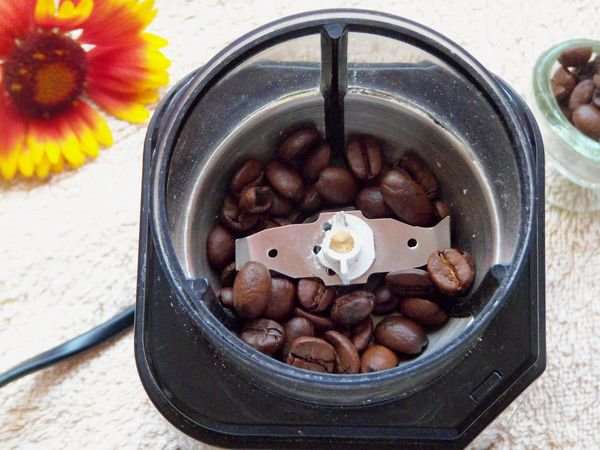 В кавомолці мелемо окремо вівсяні пластівці, кава. Так, щоб вийшла вівсяне борошно і мелену в пил кави.
