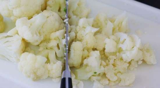 - Остиглу капусту розібрати або порізати ножем на великі суцвіття.