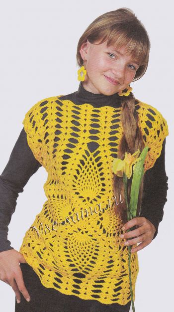 Жовтий жилет гачком “Ананаси”