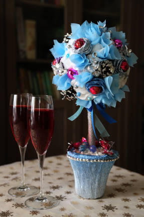 Композиція з цукерок «Новорічний топіарі»