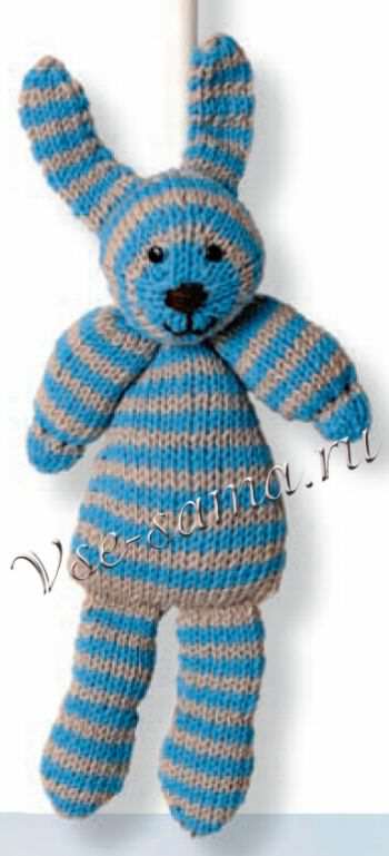 В’язаний заєць у бірюзову смужку