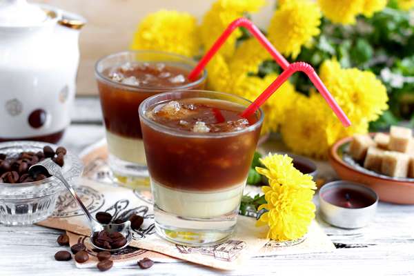 Двошарова кава фраппе зі згущеним молоком